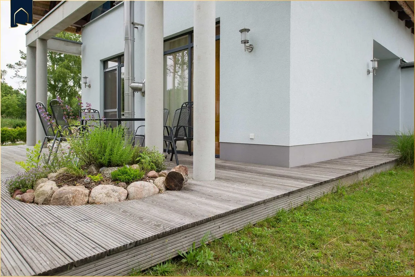 Das Haus ist hochwertig ausgestattet und lässt keine Wünsche offen: Die moderne Küche mit Spülmaschine, Mikrowelle, Backofen und großem Esstisch lädt zum gemeinsamen Kochen und Genießen ein. Im Wohnzimmer erwartet Sie eine gemütliche Sofaecke mit mehreren TVs (insgesamt 5), Blu-ray-Player, Spielzimmer, Bücher und DVDs. Eine private Sauna bietet Erholung pur, ebenso wie die sonnige Terrasse auf dem 705 m² großen, abgeschlossenen Grundstück. WLAN, Waschmaschine, Trockner und ein Safe stehen Ihnen zur Verfügung, ebenso wie 3 Premium-Parkplätze direkt am Haus.