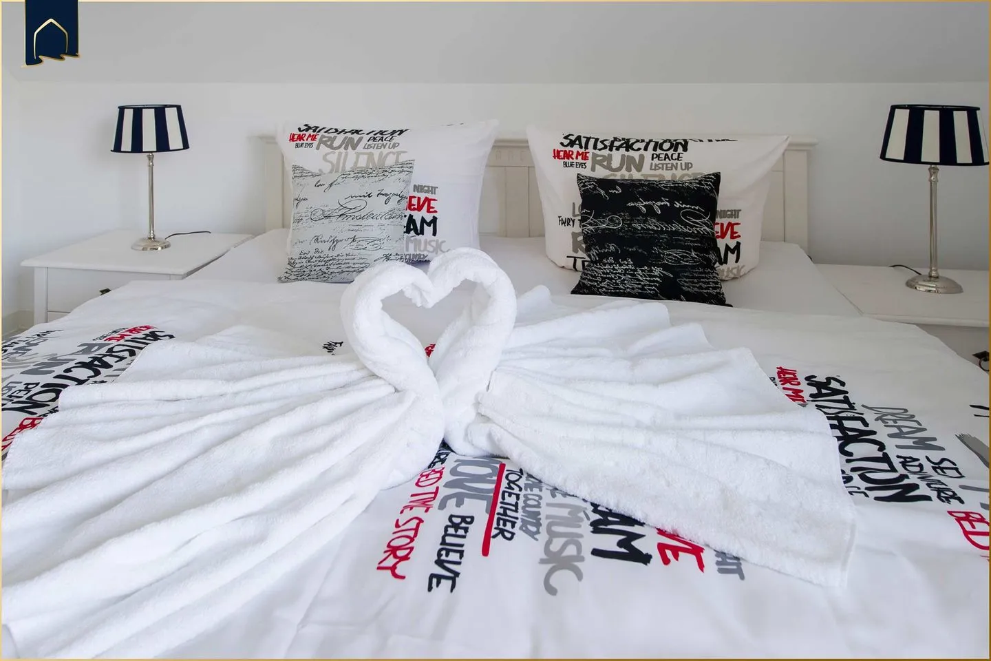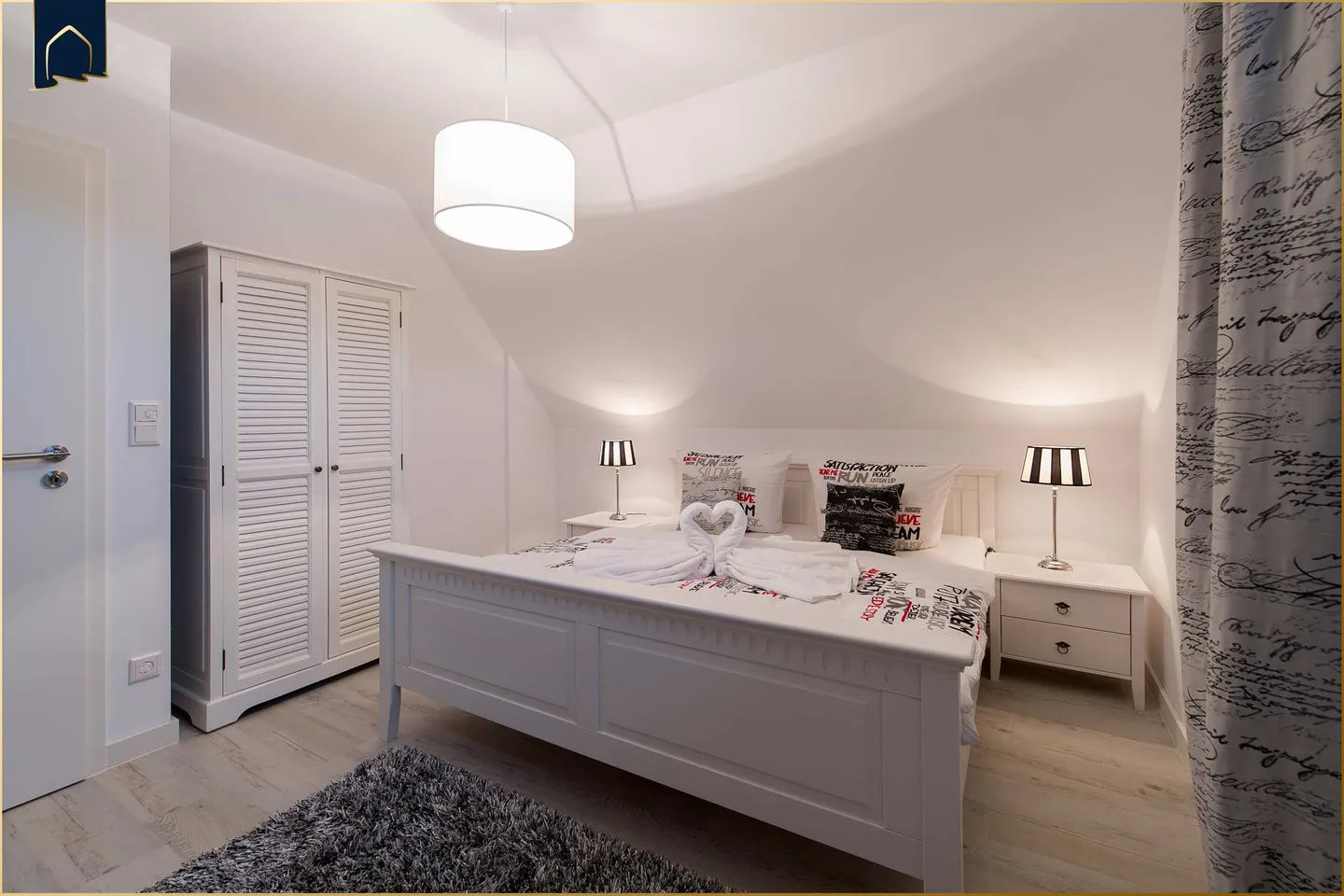 Alle drei Schlafzimmer bieten viel Platz, eine geschmackvolle Einrichtung und hochwertige Doppelbetten für erholsamen Schlaf. Warme Farben, bequeme Matratzen und ausreichend Stauraum sorgen für Komfort und eine entspannte Wohlfühlatmosphäre. Ob als Paar, Familie oder gemeinsam reisende Freunde – hier findet jeder seinen persönlichen Rückzugsort für ruhige Nächte auf Usedom.