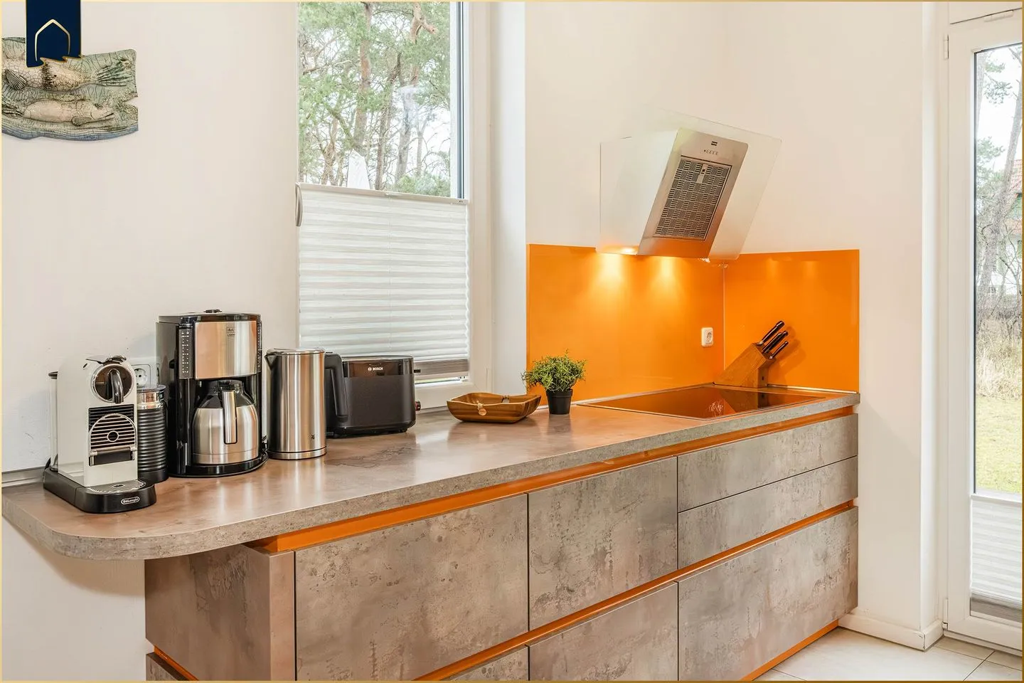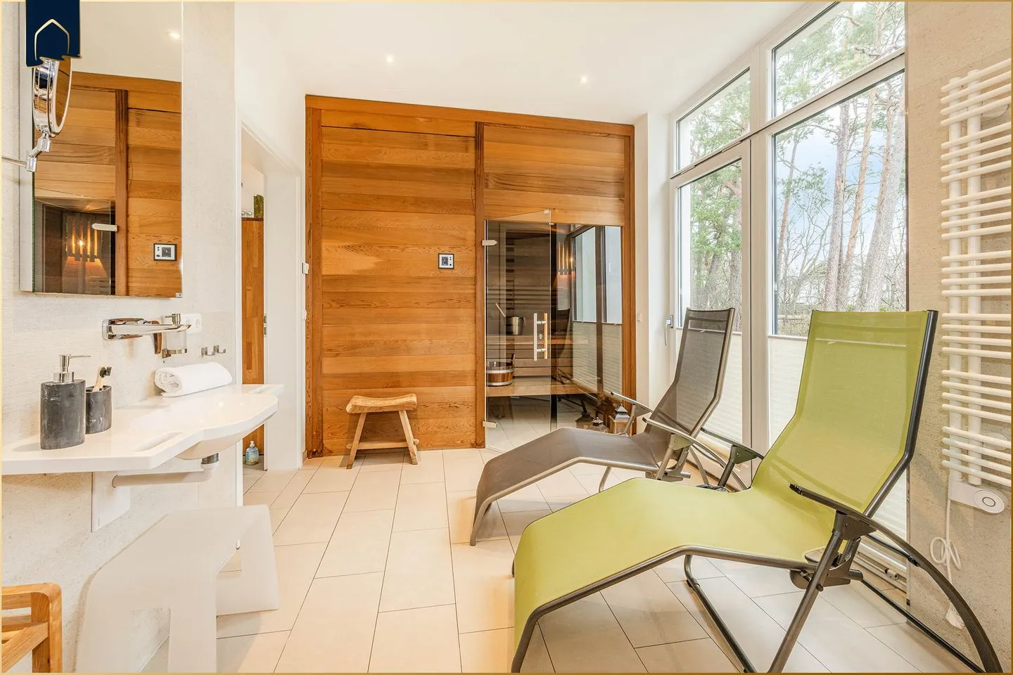 Dieses stilvolle Ferienhaus unter Reet bietet Ihnen eine perfekte Kombination aus Natur, Komfort und Strandnähe. Das Haus befindet sich auf einem großzügigen Grundstück, das in einen idyllischen Kiefernwald übergeht und Ihnen viel Ruhe und Privatsphäre bietet. Der feine Ostseestrand ist nur etwa 400 Meter entfernt und lädt zu langen Spaziergängen, Sonnenbädern und erfrischenden Badeausflügen ein. Einkaufsmöglichkeiten und Restaurants sind ebenfalls bequem erreichbar, sodass Sie Ihren Aufenthalt ganz entspannt gestalten können. Die große Terrasse mit Liegewiese bietet ideale Bedingungen für gemütliche Stunden im Freien.