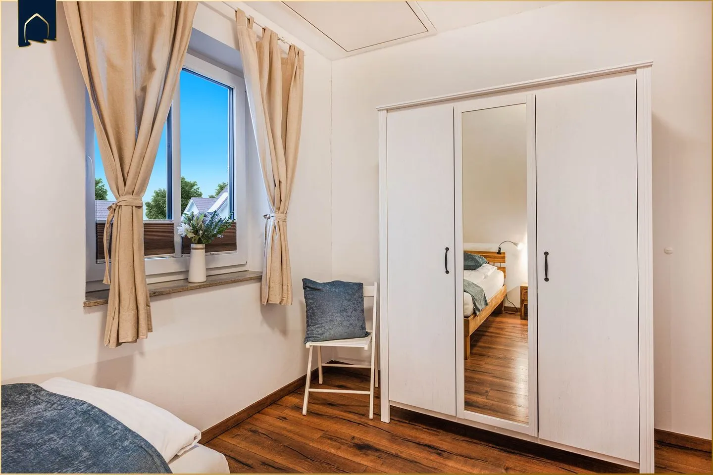 Dieses stilvolle Ferienhaus in ruhiger, ländlicher Lage bietet den idealen Rückzugsort für Familien, Paare oder kleine Reisegruppen. Umgeben von Wiesen, Wald und einer intakten Natur erleben Sie Erholung pur – und das auf zwei komfortablen Etagen. Mit zwei Schlafzimmern, zwei voll ausgestatteten Badezimmern und einem zusätzlichen Gäste-WC ist ausreichend Platz für bis zu vier Personen. Der helle Wohnbereich mit Kamin lädt zu entspannten Abenden ein, während die offene Küche mit Backofen, Gefrierfach, Geschirrspüler und vielen weiteren Annehmlichkeiten die Selbstversorgung leicht macht.