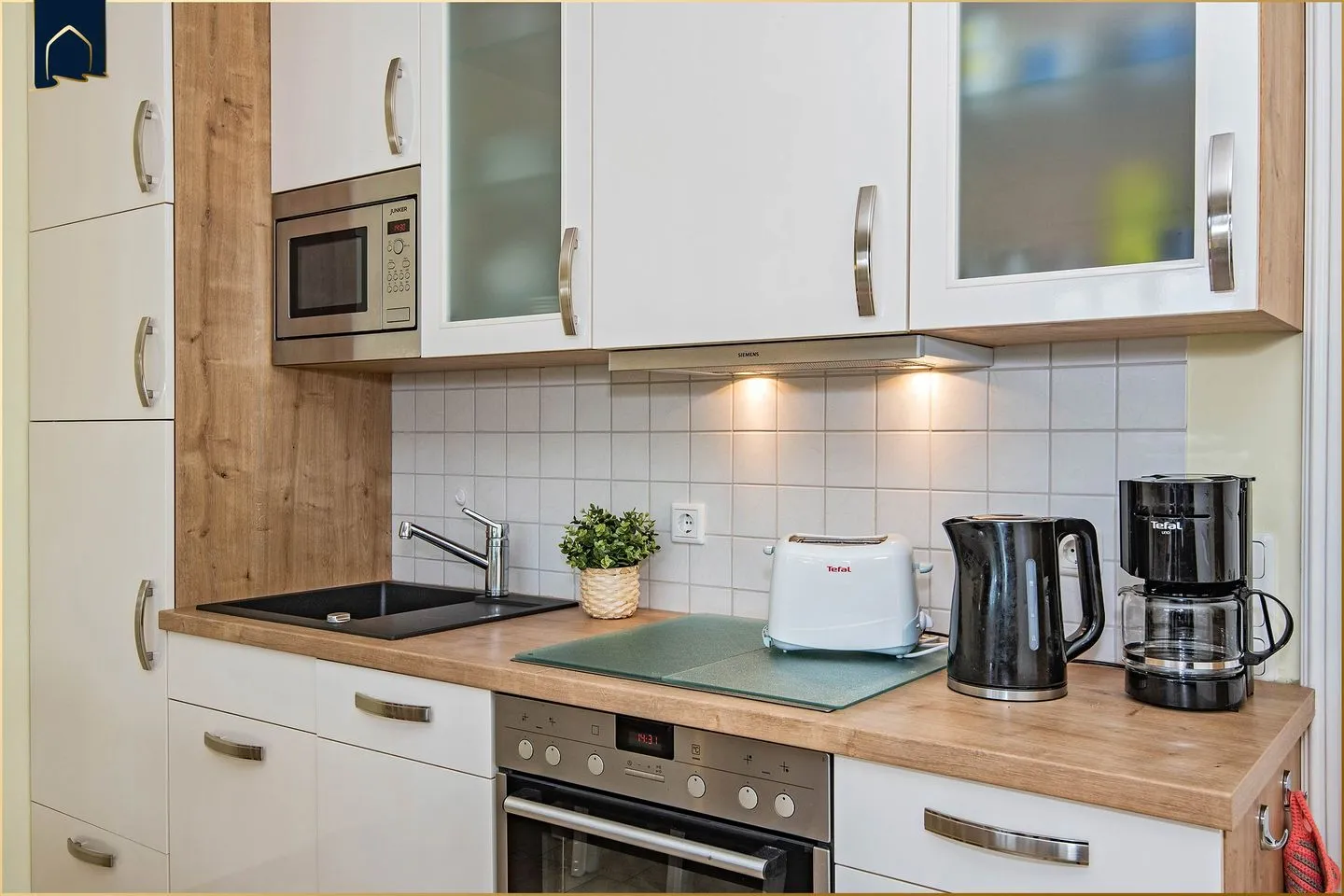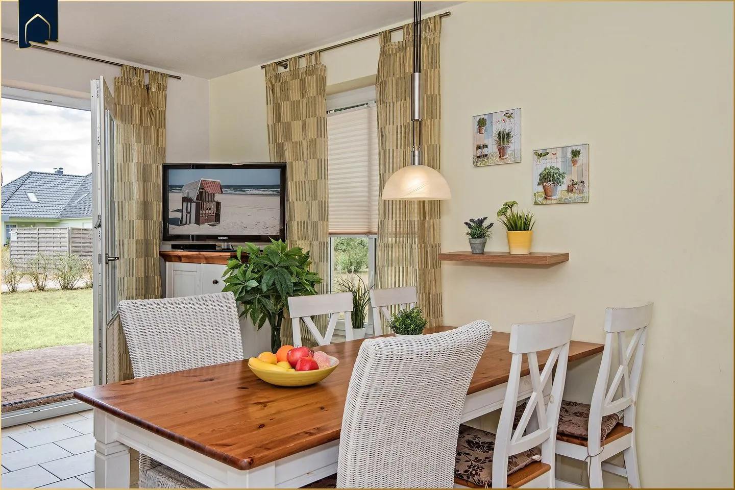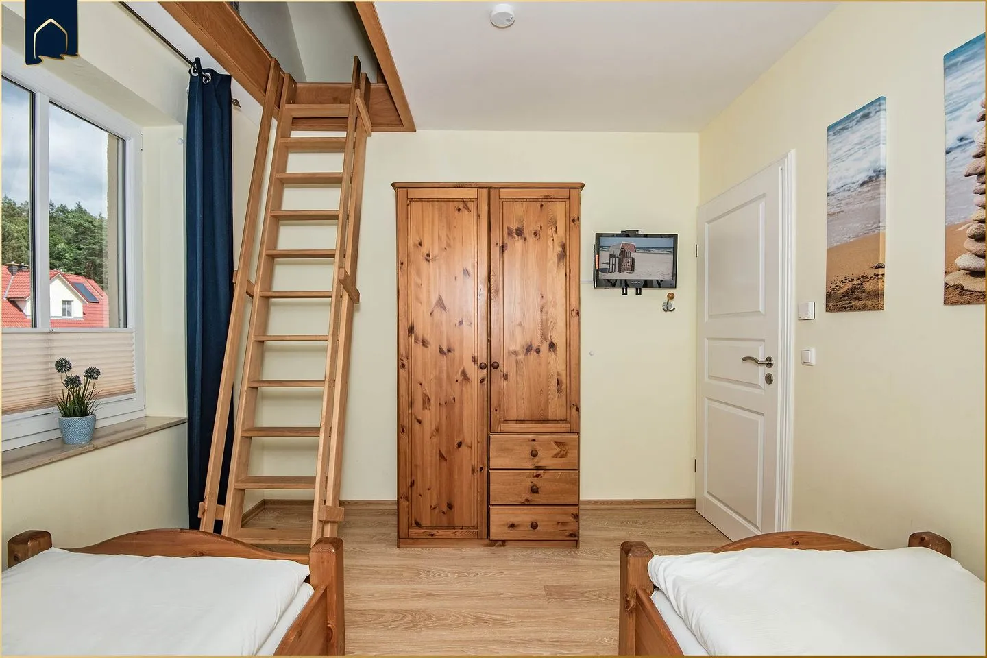 Das moderne Ferienhaus erstreckt sich über zwei Etagen und verfügt über zwei gemütliche Schlafzimmer, zwei voll ausgestattete Badezimmer (eins mit Dusche, eins mit Badewanne) sowie einen offenen Wohn- und Essbereich mit direktem Zugang zur möblierten Terrasse und dem gepflegten Garten. Die Küche ist hochwertig ausgestattet – mit Backofen, Herd, Mikrowelle, Spülmaschine, Kaffeemaschine, Espressomaschine, Toaster und vielem mehr. Kinder freuen sich über Spiele, Bücher und Malutensilien, während Erwachsene den Komfort von WLAN, 3 TVs und Fußbodenheizung genießen.