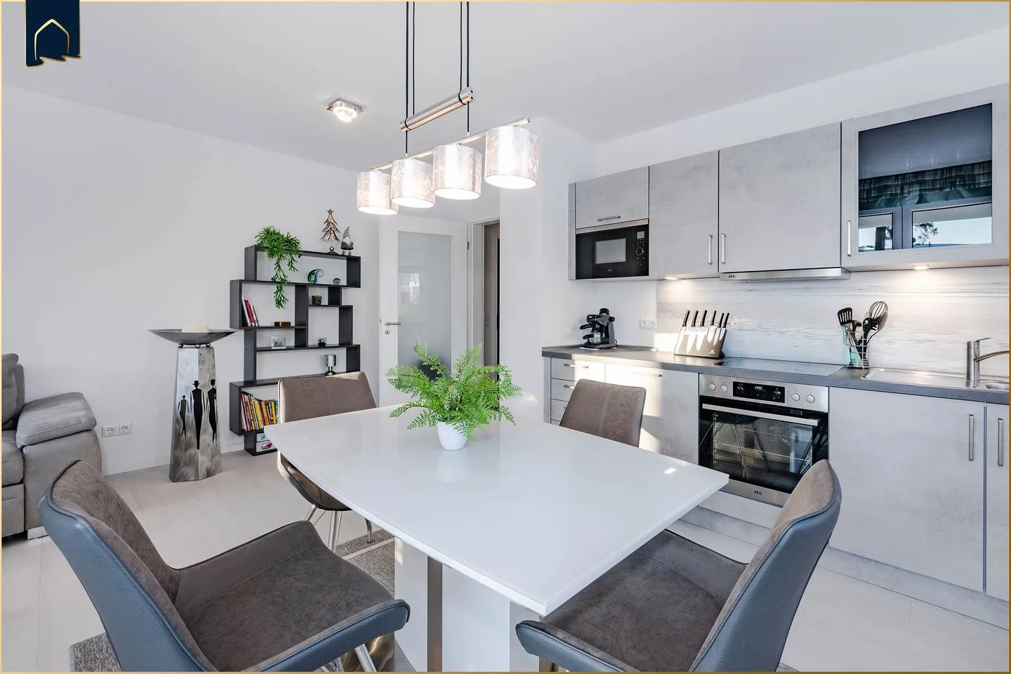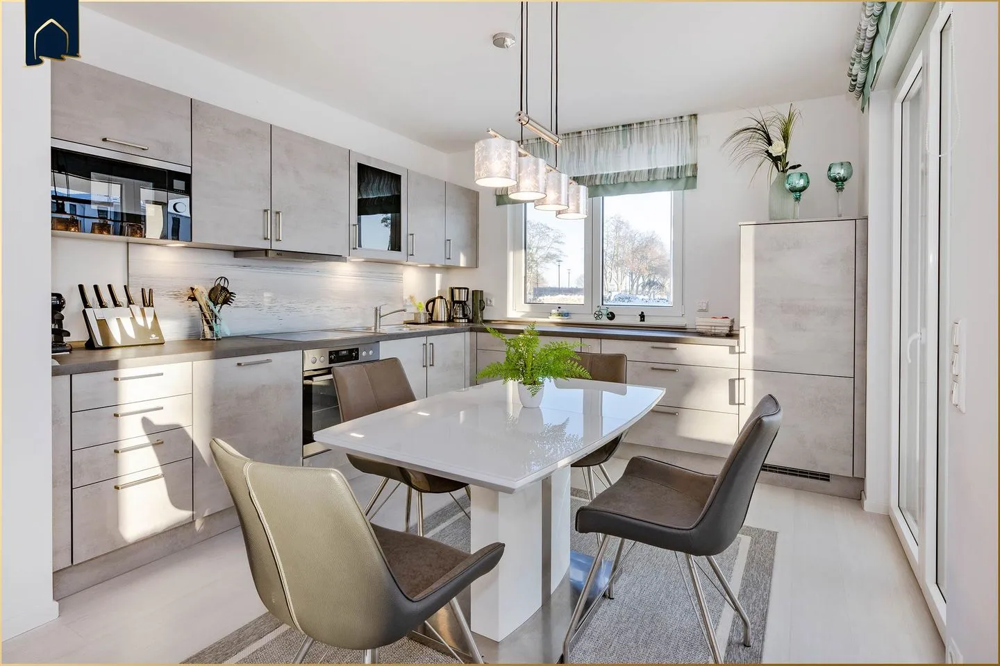 Die sehr gut ausgestattete Küche bildet das Herzstück der Unterkunft, offen zum gemütlichen Wohnzimmer, und lädt dazu ein, sich kulinarisch auszutoben. Hier finden Sie moderne Geräte wie einen Cerankochfeldherd, Backofen, Mikrowelle, Spülmaschine und eine Vielzahl von Küchenutensilien, Geschirr und Besteck. Dies macht es Ihnen leicht, sowohl einfache Snacks als auch ein festliches Abendessen zuzubereiten. Im angrenzenden Essbereich können Sie Ihre Mahlzeiten genießen und dabei den Blick auf die umliegende Natur bewundern.