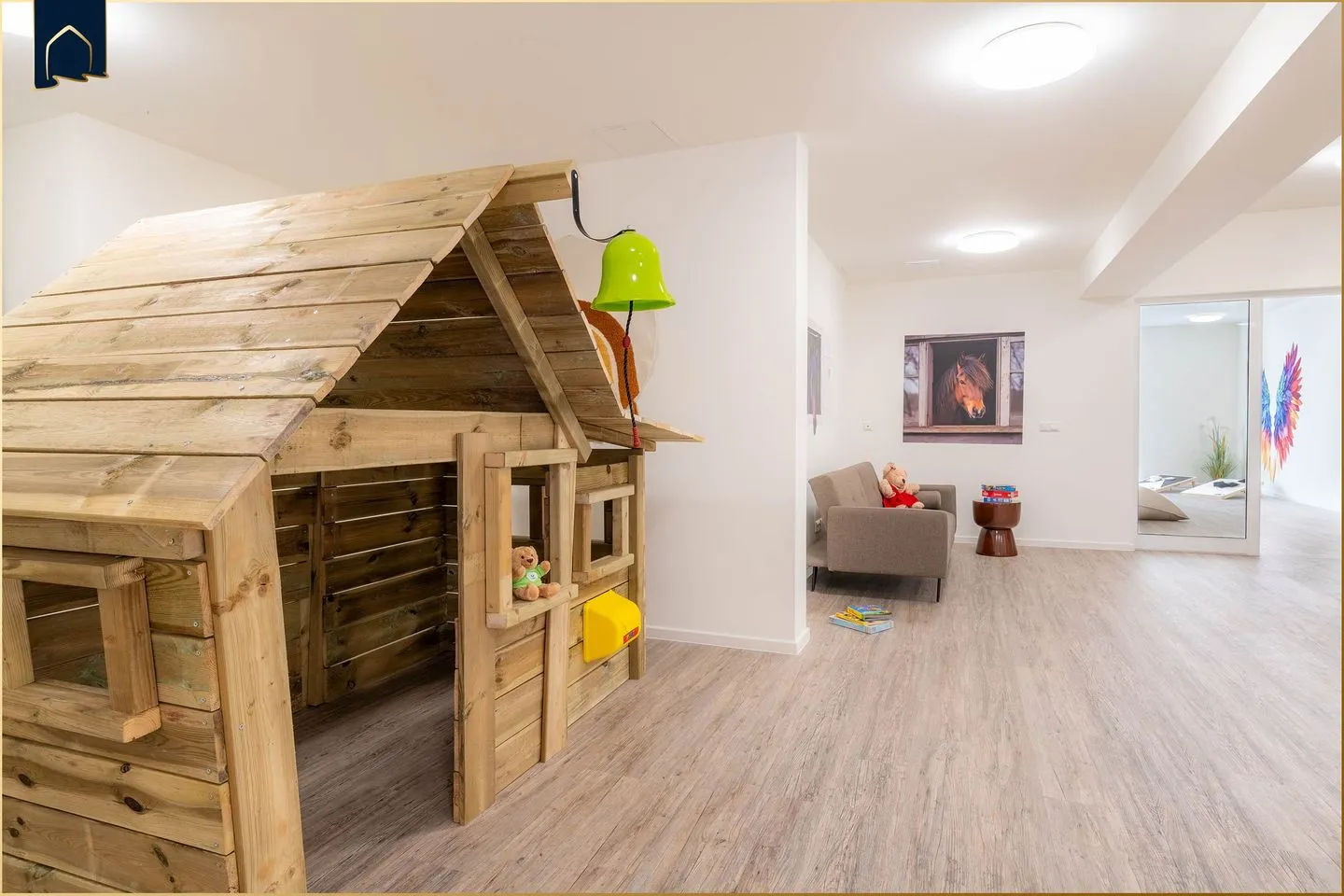 Ein besonderes Highlight ist der Freizeitbereich im Keller des Nachbarhauses: Hier erwarten Sie eine gemütliche Sitzecke, Spielmöglichkeiten für die Kids, Kicker, Billard, eine Tischtennisplatte sowie ein separater Fitnessraum. Ideal für aktive Urlaubstage und geselliges Beisammensein – unabhängig vom Wetter.