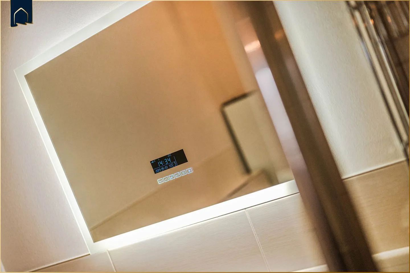 Das geschmackvoll eingerichtete Wohnzimmer mit Sofa, TV und Kamin lädt zu gemütlichen Stunden ein. Die offene Küche ist mit Backofen, Herd, Spülmaschine, Kühlschrank mit Gefrierfach, Toaster, Wasserkocher, Espressomaschine und allen wichtigen Küchenutensilien ausgestattet – perfekt für Selbstversorger. Im Essbereich finden bis zu vier Personen bequem Platz. Das moderne Badezimmer verfügt über eine begehbare Dusche, Waschbecken, WC, Kosmetik- und Ganzkörperspiegel sowie einen Haartrockner. Fußbodenheizung sorgt für angenehme Wärme, selbst an kühleren Tagen.