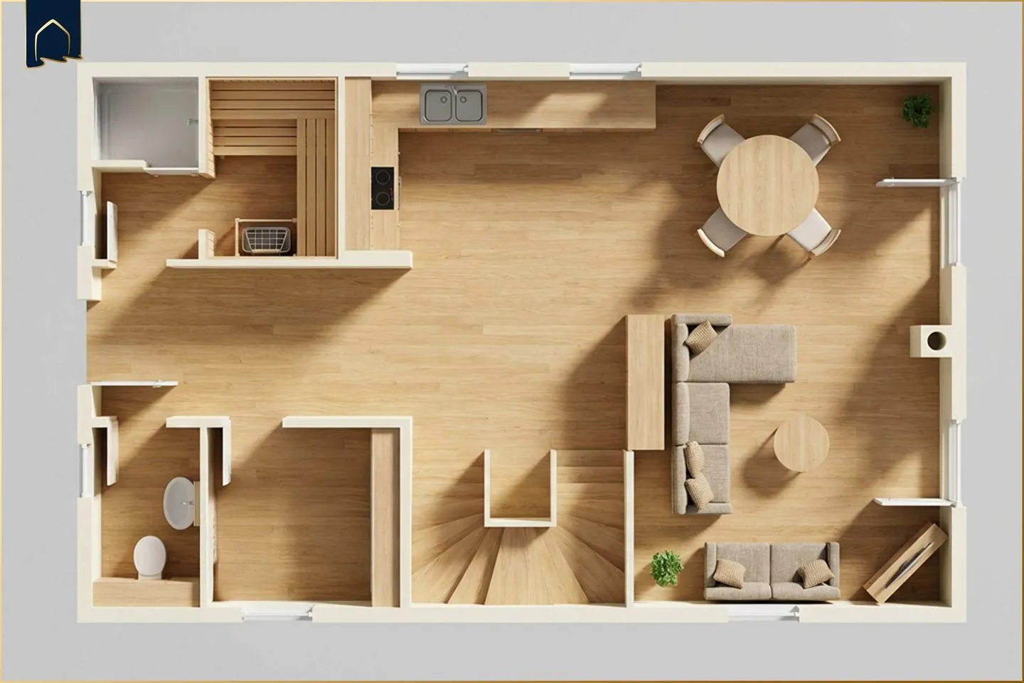 Das geschmackvoll eingerichtete Haus verfügt über zwei separate Schlafzimmer, ein modernes Bad mit Dusche und Badewanne sowie ein zusätzliches Gäste-WC. Herzstück ist der lichtdurchflutete Wohn- und Essbereich mit gemütlicher Sofaecke und Kaminofen. Die offene Küche ist voll ausgestattet mit Herd, Backofen, Spülmaschine, Kühlschrank, Gefrierschrank, Toaster, Wasserkocher, Kaffeemaschine und Espressomaschine. Eine eigene Sauna sorgt für entspannte Wellnessmomente – besonders in der kühleren Jahreszeit.