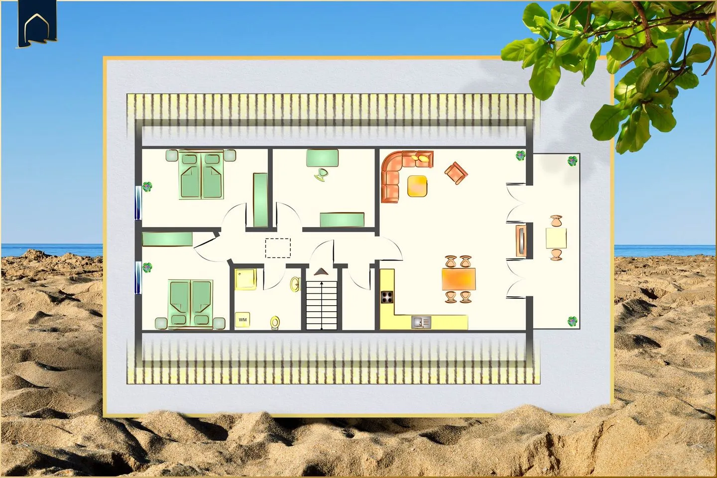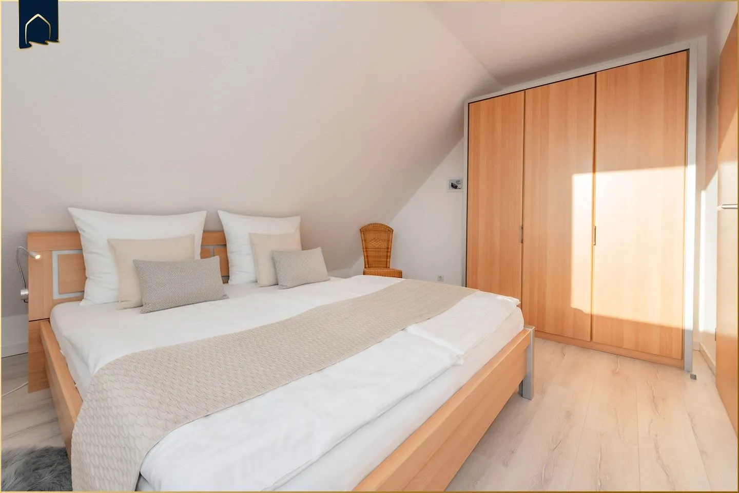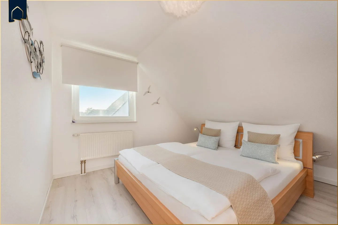 Thusnelda verfügt über insgesamt drei Zimmer, darunter zwei separate Schlafzimmer und ein großzügiges Wohnzimmer mit moderner Sofaecke. Im Wohnbereich steht Ihnen ein Flachbild-TV (44–55 Zoll) zur Verfügung, der von einem DVD-Spieler ergänzt wird. Für den Aufenthalt ist kostenfreies WLAN vorhanden, sodass auch das Arbeiten im Urlaub oder das Streaming von Medien problemlos möglich ist. Die gesamte Unterkunft ist als Nichtraucherobjekt ausgewiesen und mit Fliegengittern an den Fenstern für zusätzlichen Komfort ausgestattet. Alle Fenster verfügen über Sichtschutz.