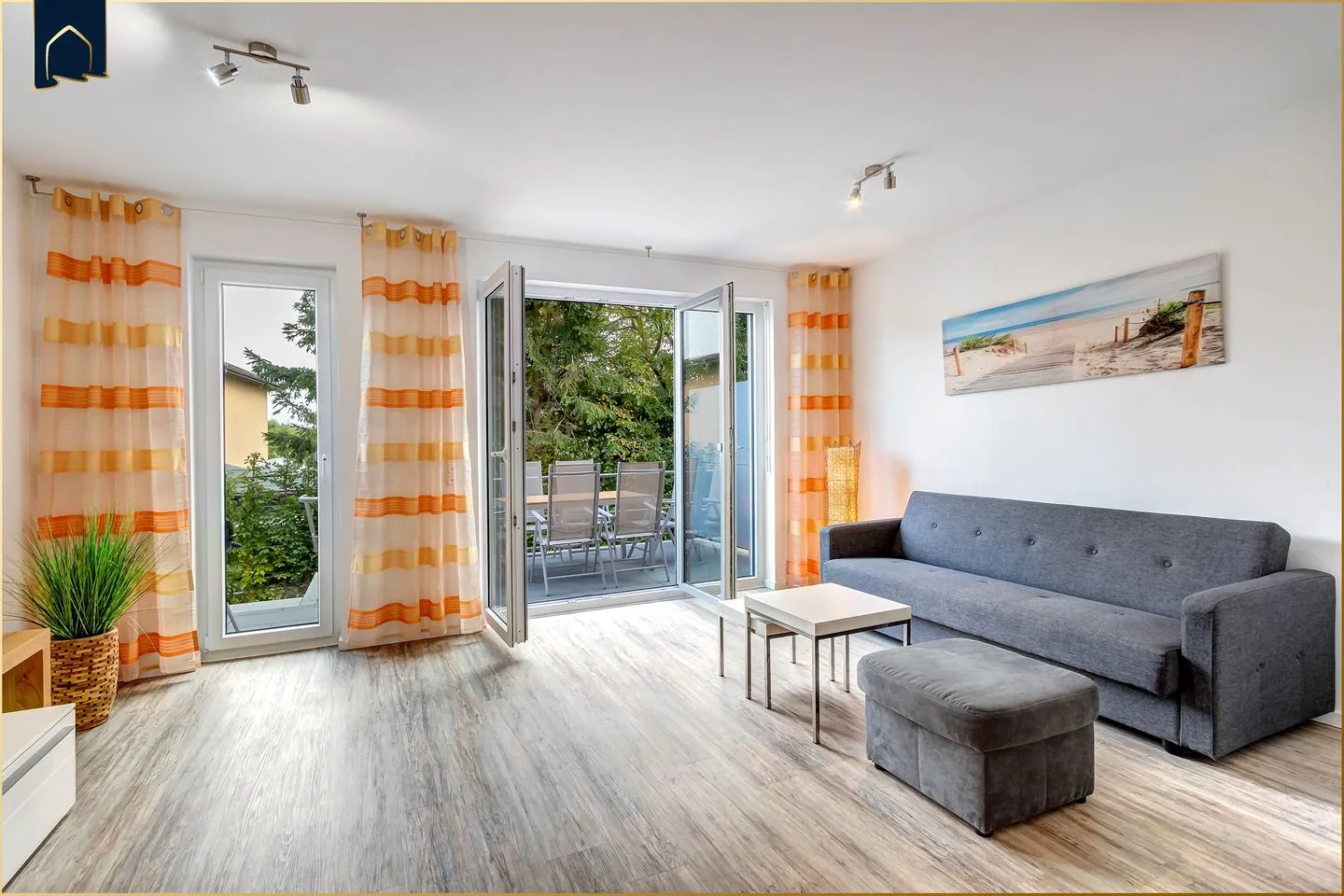 Das Ferienhaus erstreckt sich über zwei Etagen und verfügt über ein großzügiges, lichtdurchflutetes Wohnzimmer mit gemütlicher Sofaecke und großem TV. Das Sofa kann als Schlafplatz für eine fünfte Person genutzt werden. Von hier aus betreten Sie die möblierte Terrasse, auf der Sie bei einem Glas Wein entspannte Abende genießen können – Grill und Gartenmöbel inklusive.