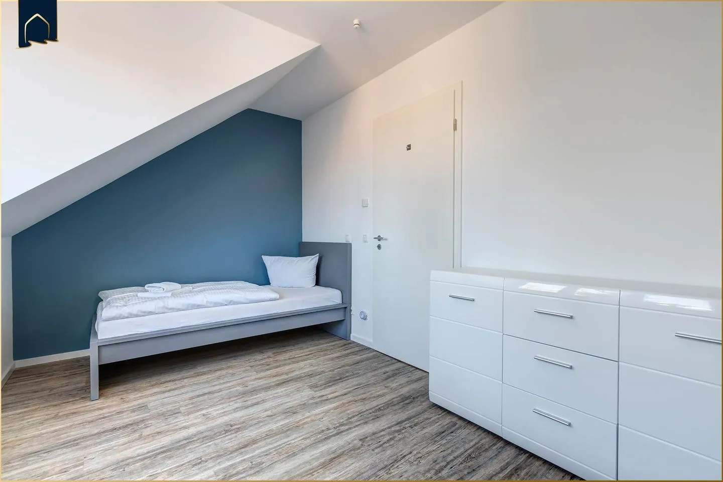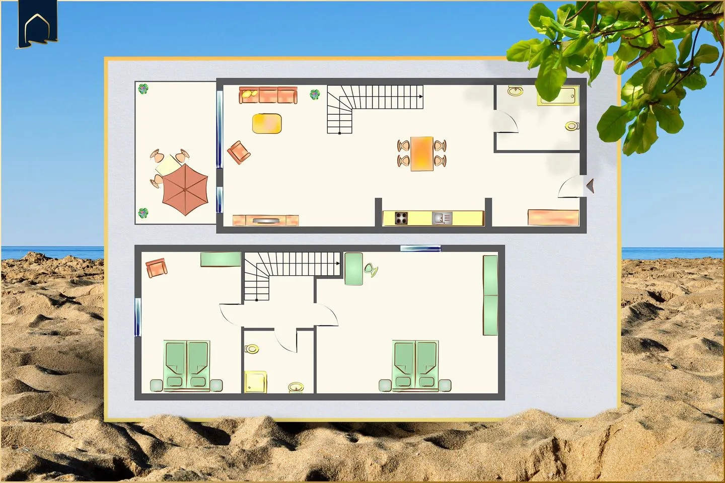 Im Obergeschoss erwarten Sie zwei gemütliche Schlafzimmer. Das Elternschlafzimmer bietet ein komfortables Doppelbett und einen geräumigen Kleiderschrank, während das zweite Zimmer mit zwei Einzelbetten ideal für Kinder oder Freunde geeignet ist. Auch auf dieser Etage steht Ihnen ein zweites Badezimmer mit Dusche und WC zur Verfügung.