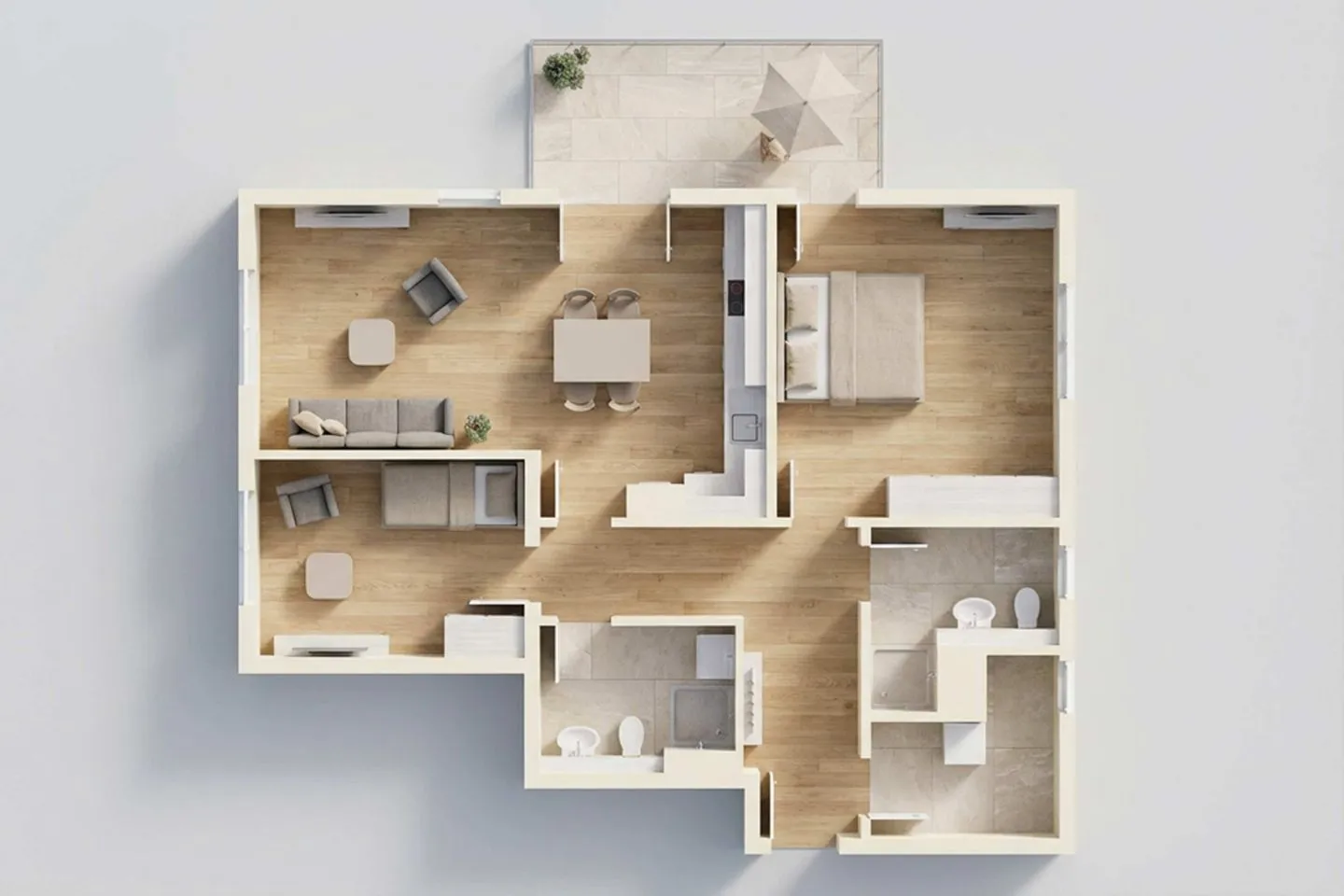 Drei moderne Fernseher (Smart-TV) sorgen bei Groß und Klein für Unterhaltung, während kostenfreies WLAN durchgehend zur Verfügung steht. Im gesamten Appartement erwartet Sie Fußbodenheizung – für ein angenehmes Raumklima zu jeder Jahreszeit. Alle Fenster verfügen über Sichtschutz und Fliegengitter, sodass Sie ungestört entspannen können.