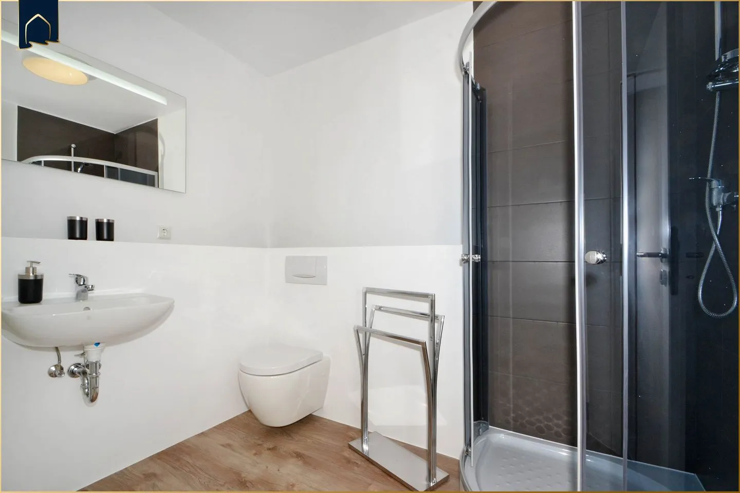 Das gemütliche Wohnzimmer mit bequemer Sofaecke, Sessel und TV lädt zum Entspannen ein. Im offenen Essbereich genießen Sie gemeinsame Mahlzeiten, die in der gut ausgestatteten Küche mit Herd, Backofen, Kühlschrank mit Gefrierfach, Geschirrspüler, Kaffeemaschine, Espressomaschine, Toaster und Wasserkocher zubereitet werden können. Das separate Schlafzimmer mit hochwertigem Bodenbelag sorgt für erholsamen Schlaf. Ein modernes Bad mit Dusche und warmem Wasser sowie praktische Extras wie WLAN, Staubsauger, Wäscheständer und Ganzkörperspiegel runden den Wohnkomfort ab.