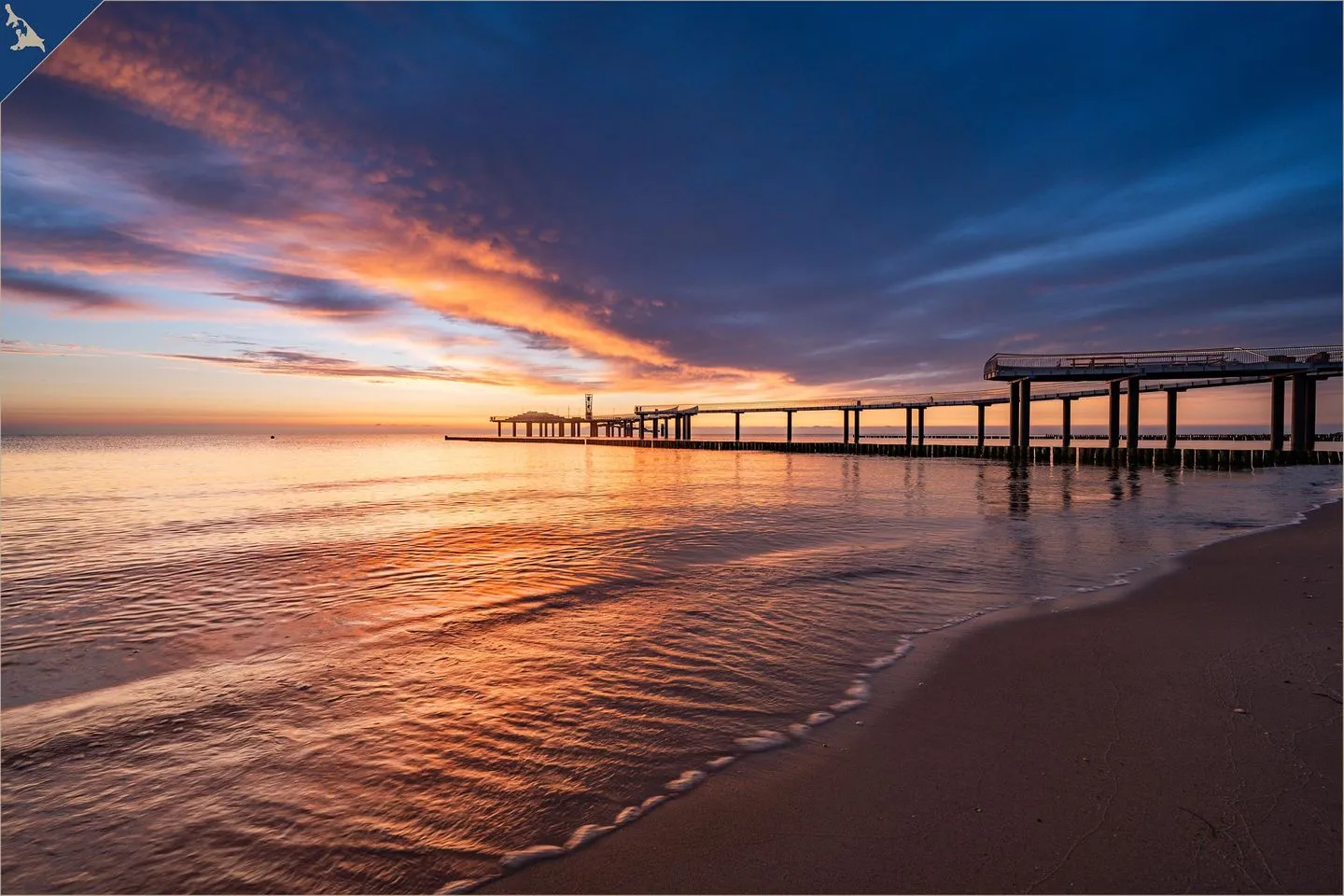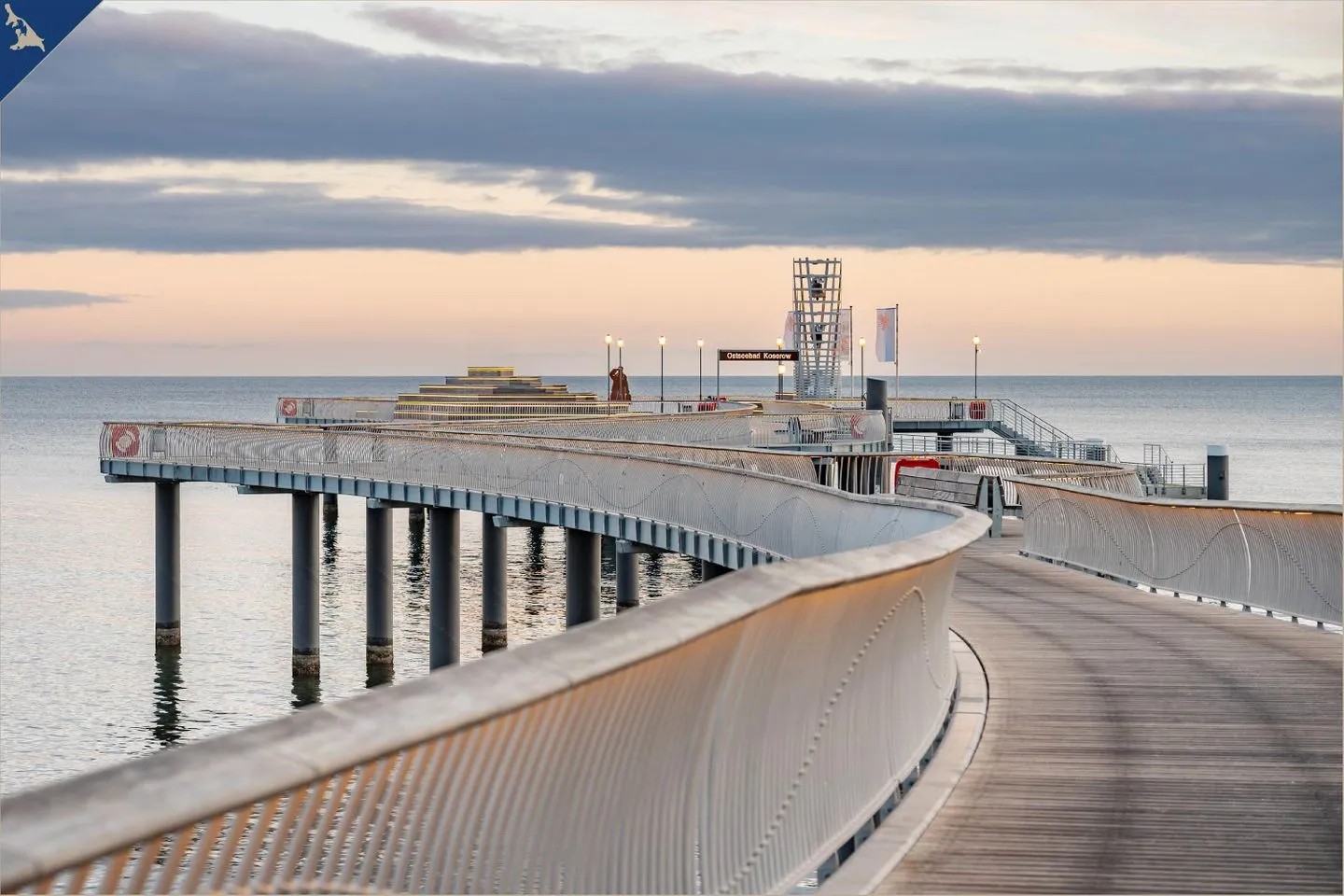 Koserow, charmantes Bernsteinbad Usedoms, begeistert Urlauber: Die 280 m lange, geschwungene Seebrücke mit Glockenturm bietet Sonnenuntergangs Kino und barrierefreies Flanieren. Direkt am Strand reihen sich liebevoll restaurierte Salzhütten aus dem 19. Jh., Zeugnisse der alten Fischerei Tradition. Naturfans erkunden den beeindruckenden 58 m hohen Streckelsberg – Kliff, Buchenwald, Panorama pur. Die mittelalterliche romanisch gotische Dorfkirche mit Vineta Kruzifix rundet das Kultur Erlebnis stilvoll ab.