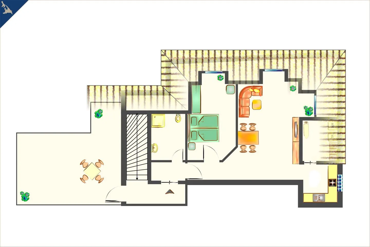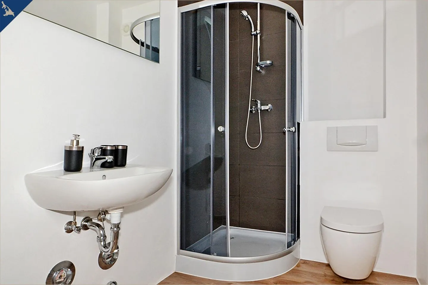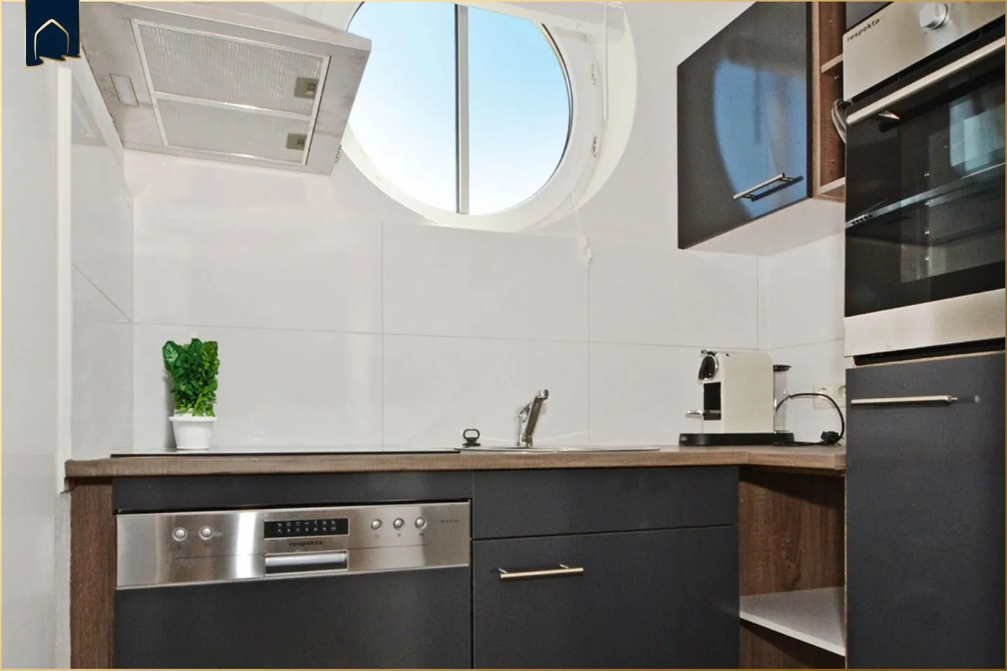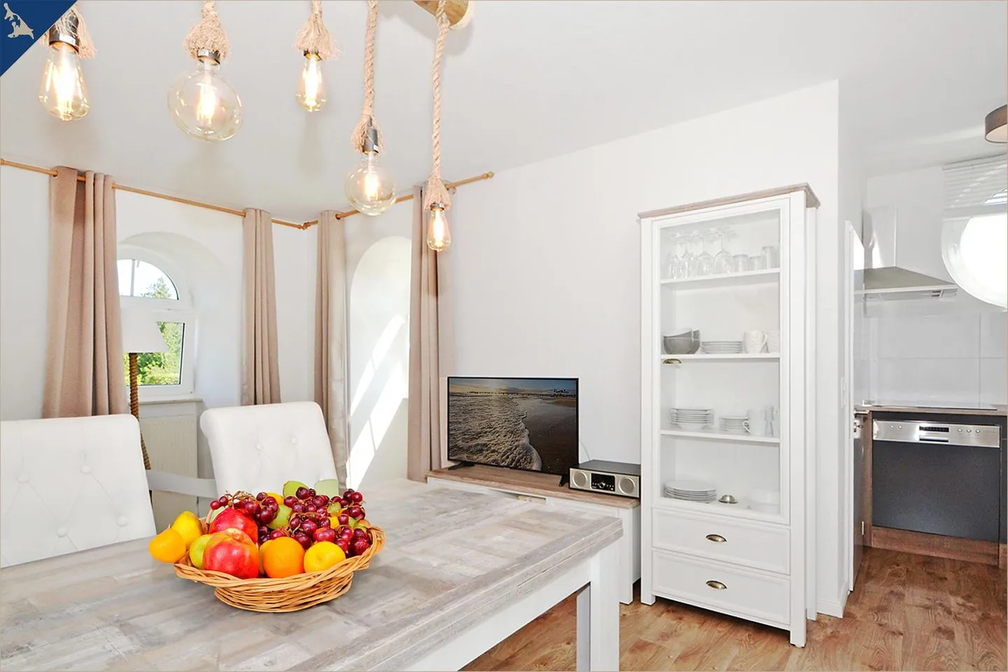 Die moderne Ausstattung lässt keine Wünsche offen: ein gemütlicher Wohnbereich mit Sofa, Sessel und TV, ein separates Schlafzimmer sowie eine gut ausgestattete Küche mit Herd, Backofen, Kühlschrank, Gefrierfach, Kaffeemaschine, Espressomaschine, Toaster, Wasserkocher und Geschirrspüler. Der Essbereich bietet ausreichend Platz für gemeinsame Mahlzeiten. Das helle Badezimmer verfügt über eine Dusche, WC, Waschbecken und Spiegel. Ein Ganzkörperspiegel und ausreichend Stauraum wie Garderobe und Kommode sorgen für zusätzlichen Komfort.