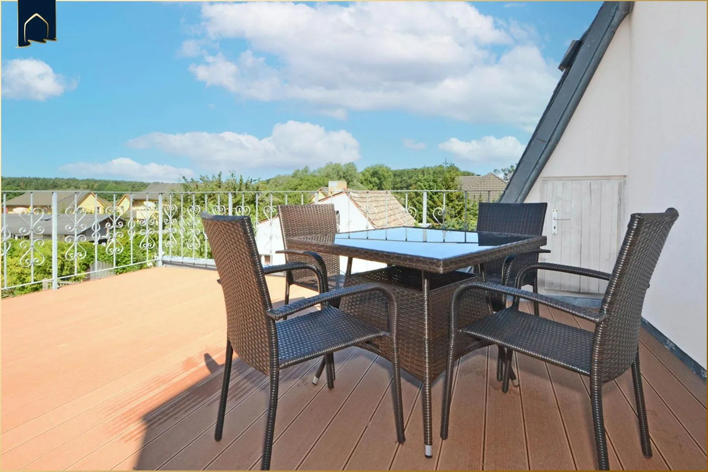 Die Dachterrasse nur über den Hausflur erreichbar ist