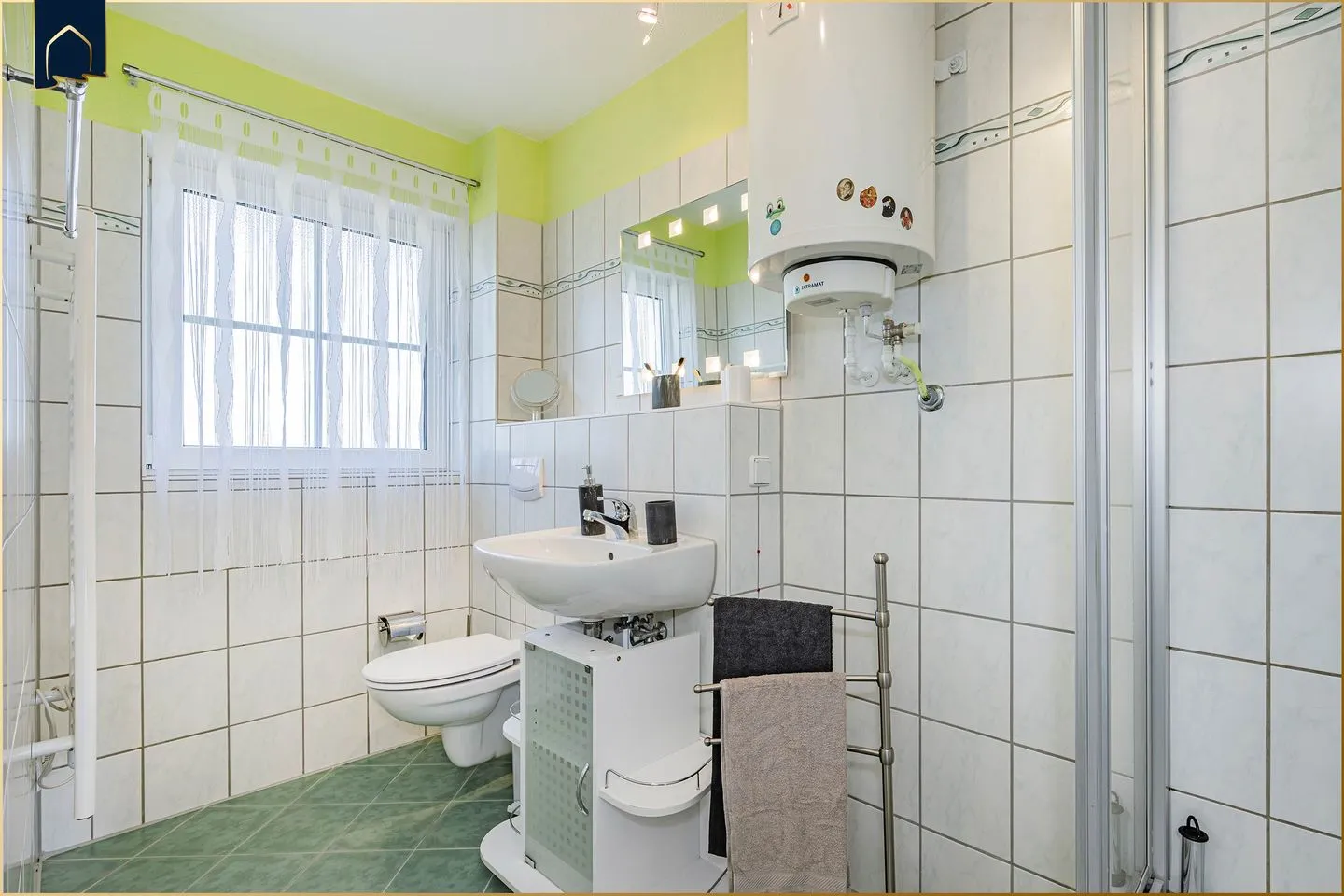 Die separate Küche ist voll ausgestattet mit Herd, Kühlschrank, Gefrierfach, Mikrowelle, Spülmaschine, Kaffeemaschine, Wasserkocher und Toaster – perfekt für die Selbstversorgung. Am Esstisch genießen Sie gemeinsame Mahlzeiten oder planen Ihre nächsten Ausflüge. Für höchsten Komfort sorgen Fliegengitter an den Fenstern, Sichtschutz, Ganzkörperspiegel, Kosmetikspiegel und ein gepflegtes Badezimmer mit warmem Wasser und moderner Dusche. Ein eigener Parkplatz sowie ein abschließbarer Fahrradabstellraum stehen Ihnen zur Verfügung.
