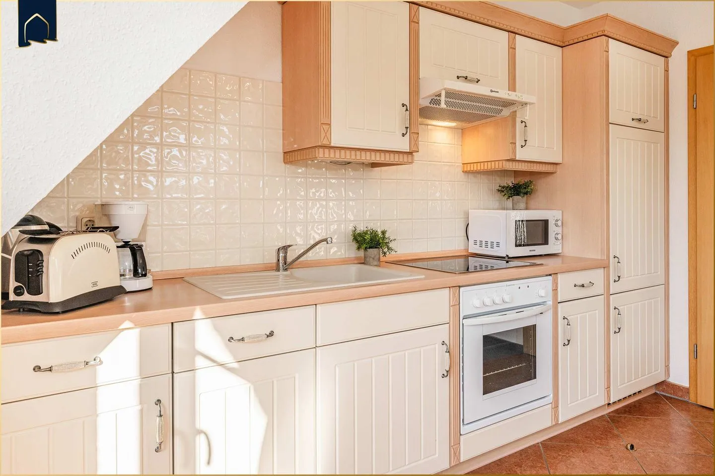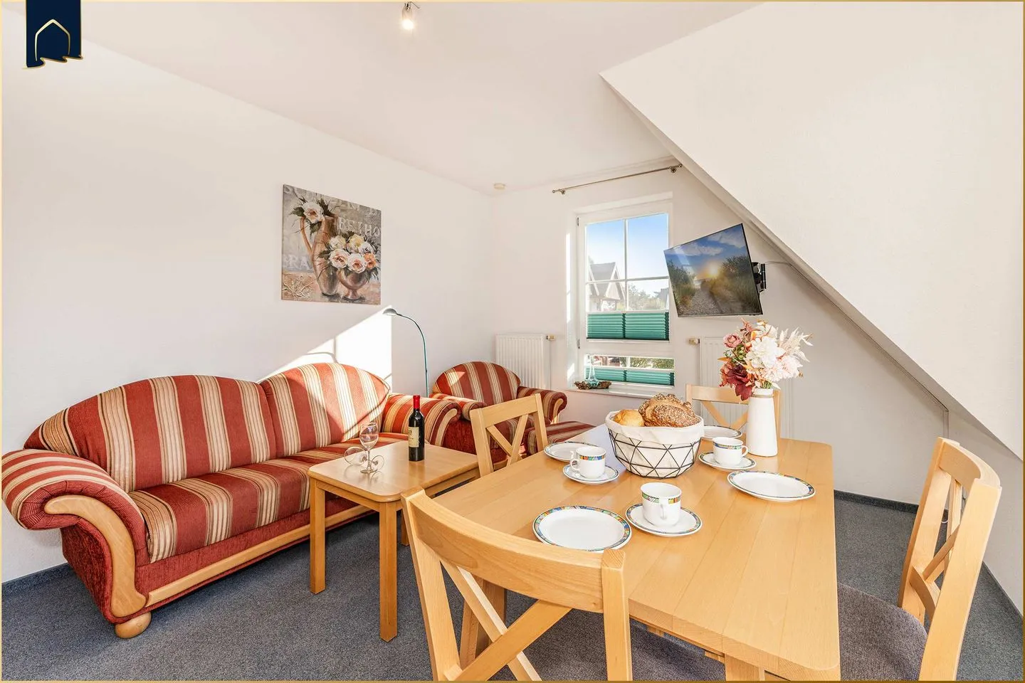 Die Ferienwohnung bietet eine angenehme Kombination aus Gemütlichkeit und Funktionalität. Der offene Wohnbereich mit integrierter Küche schafft eine helle, freundliche Atmosphäre – ein schöner Ort für gemeinsame Mahlzeiten oder entspannte Stunden auf dem Sofa. Auch bei weniger gutem Wetter sorgt die Sauna im Dachgeschoss für erholsame Momente. Dank durchdachter Ausstattung und ruhiger Lage ist die Unterkunft besonders bei Familien sehr beliebt.