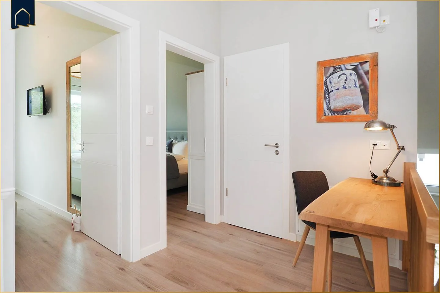 Im separaten Arbeitsbereich mit Schreibtisch und schneller Internetverbindung können Sie in aller Ruhe E-Mails checken oder Ihre Projekte abschließen – mit Blick ins Grüne und frischer Ostseeluft.