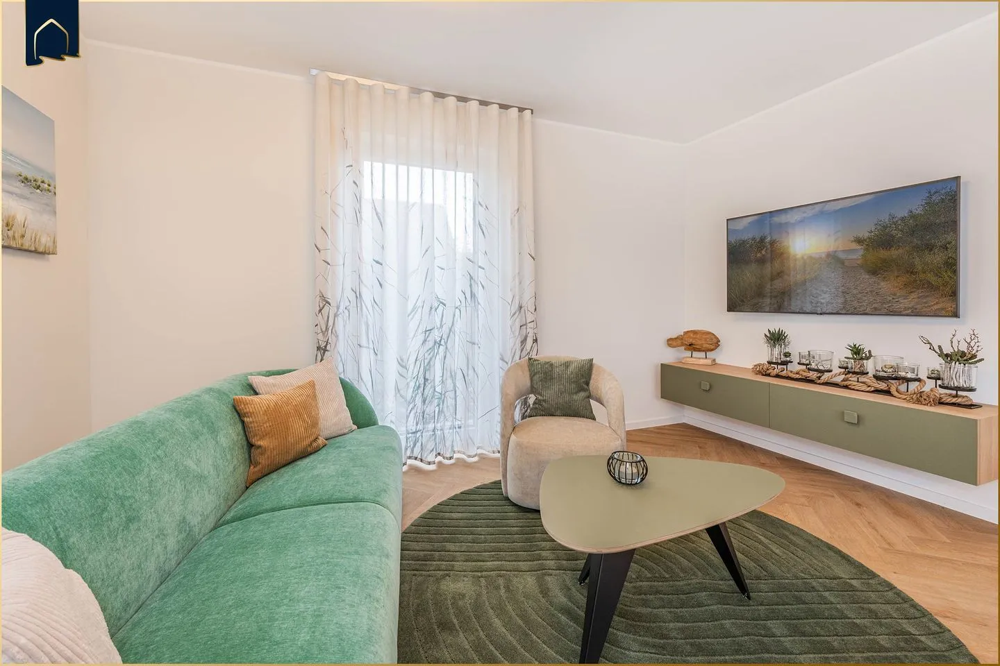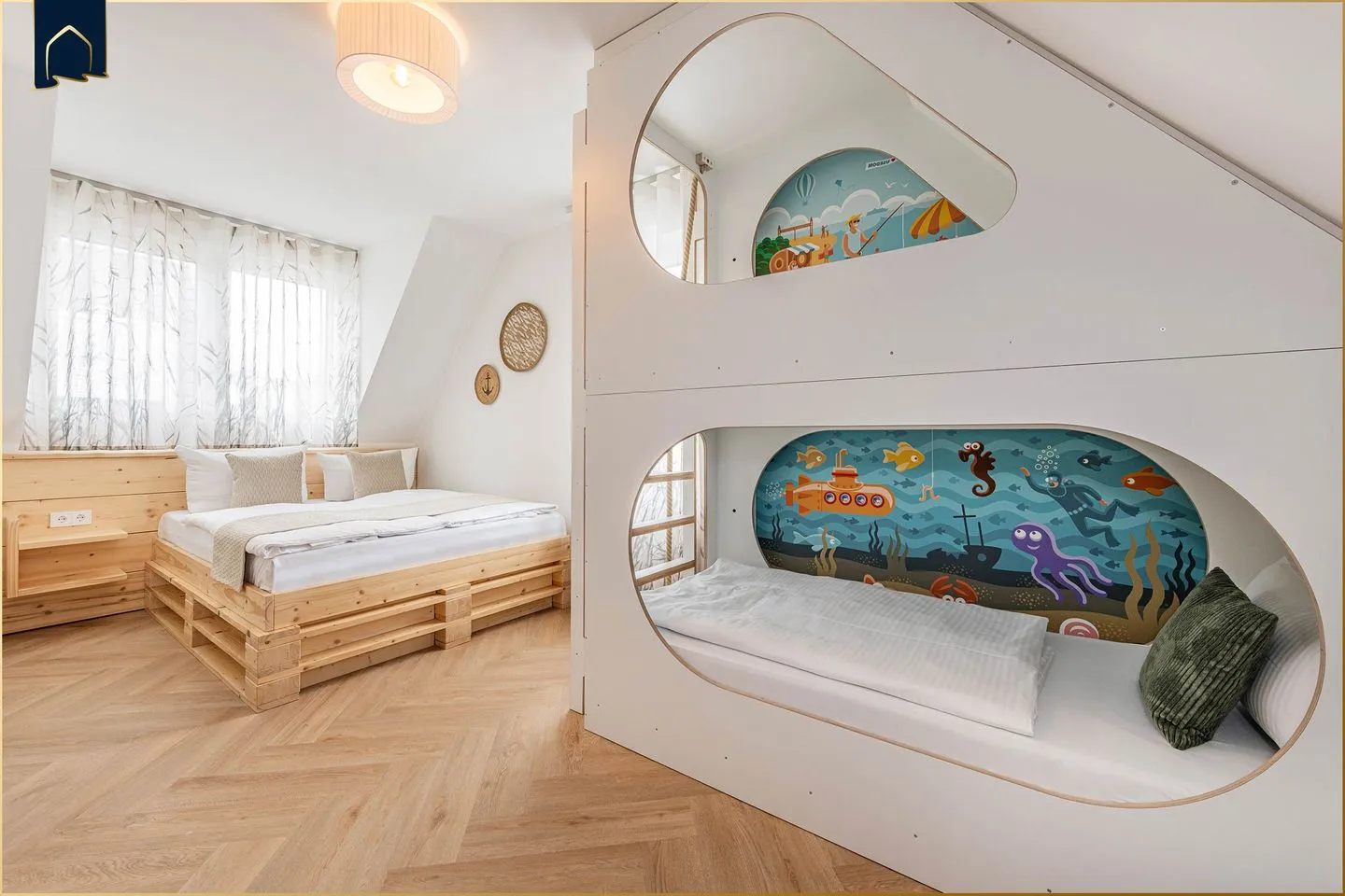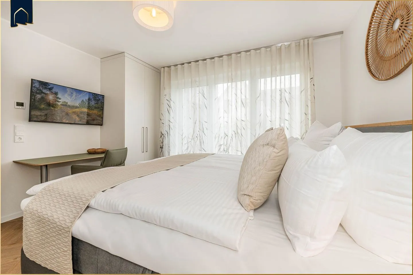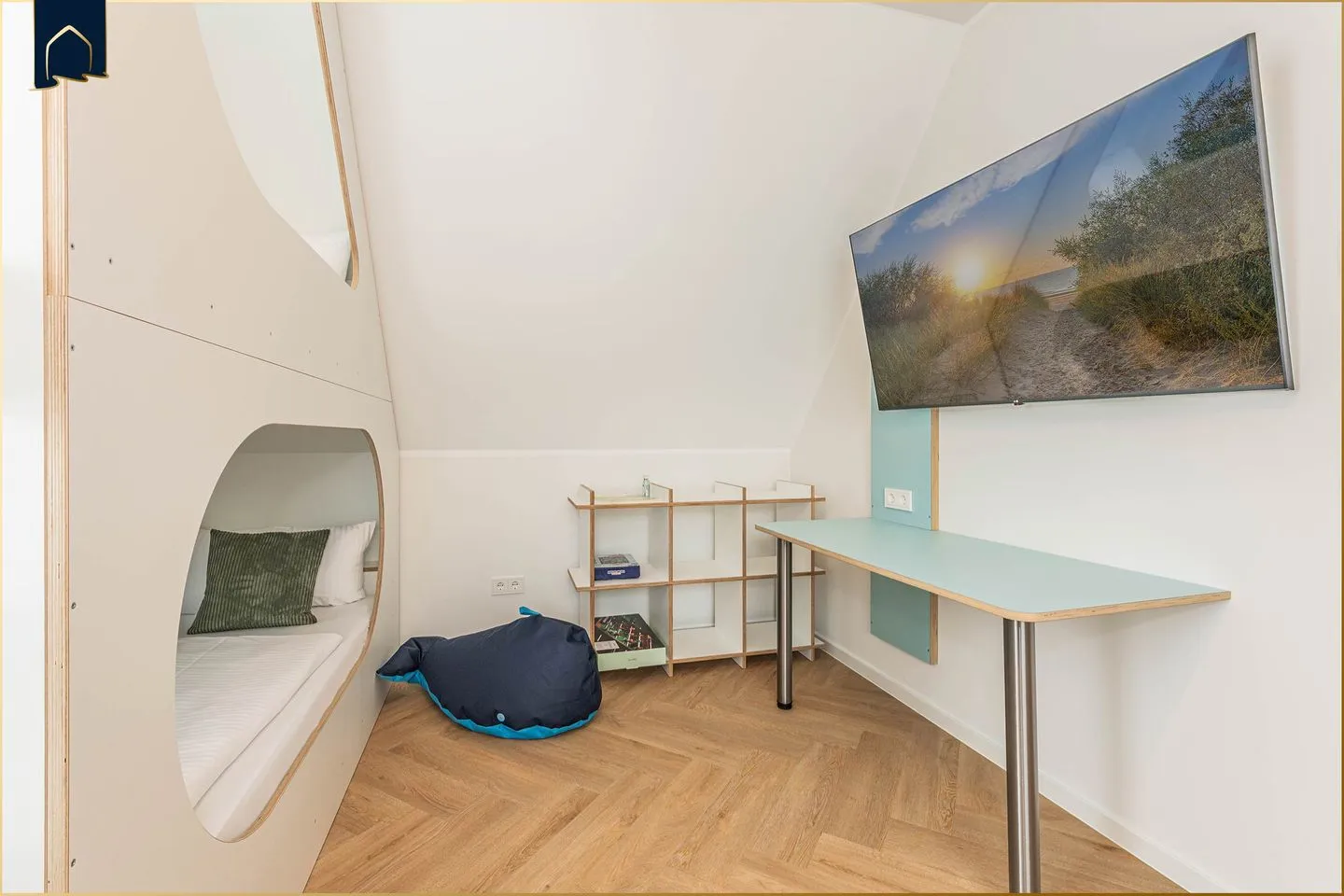 Die Ausstattung lässt keine Wünsche offen: Neben der komplett ausgestatteten Küche mit Herd, Backofen, Gefrierschrank, Geschirrspüler, Kaffeemaschine, Mikrowelle und Wasserkocher stehen auch Waschmaschine und Trockner zur Verfügung. Für Unterhaltung sorgen vier moderne Fernseher und schnelles WLAN – perfekt auch für Workation. Im Außenbereich lädt die möblierte Terrasse zum Verweilen ein, ein Privatparkplatz ist direkt am Haus vorhanden. Dank großzügiger Fenster, stilvoller Einrichtung und liebevollen Details fühlen sich hier große und kleine Gäste sofort wohl. Auch Haustiere sind herzlich willkommen!