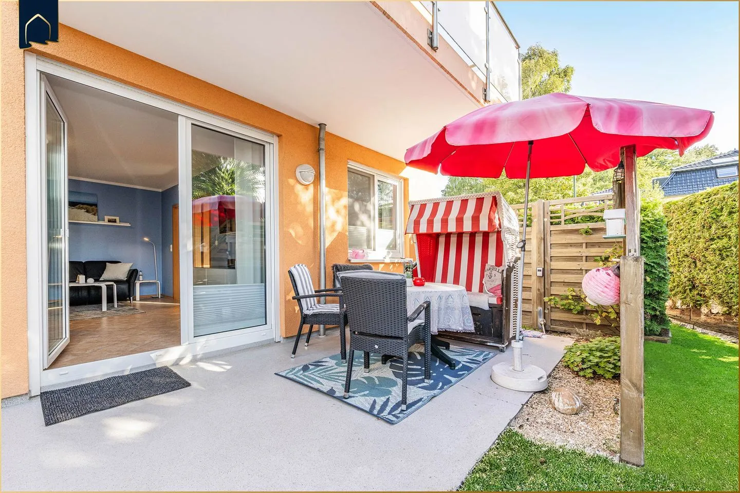 Mit Platz für bis zu zwei Personen eignet sich die Ferienwohnung „Ostseegold“ besonders für Paare oder Senioren. Die ruhige Lage im Dorf sorgt für erholsame Nächte. Ein Strandkorb, Gartenmöbel und ein Sonnenschirm stehen zur Verfügung, um die Sonne entspannt im eigenen Außenbereich zu genießen. Wer den Abend kulinarisch ausklingen lassen möchte, nutzt die voll ausgestattete Küche mit Backofen, Cerankochfeld, Mikrowelle, Kaffeemaschine und Toaster – oder entdeckt die nahegelegene Gastronomie.
