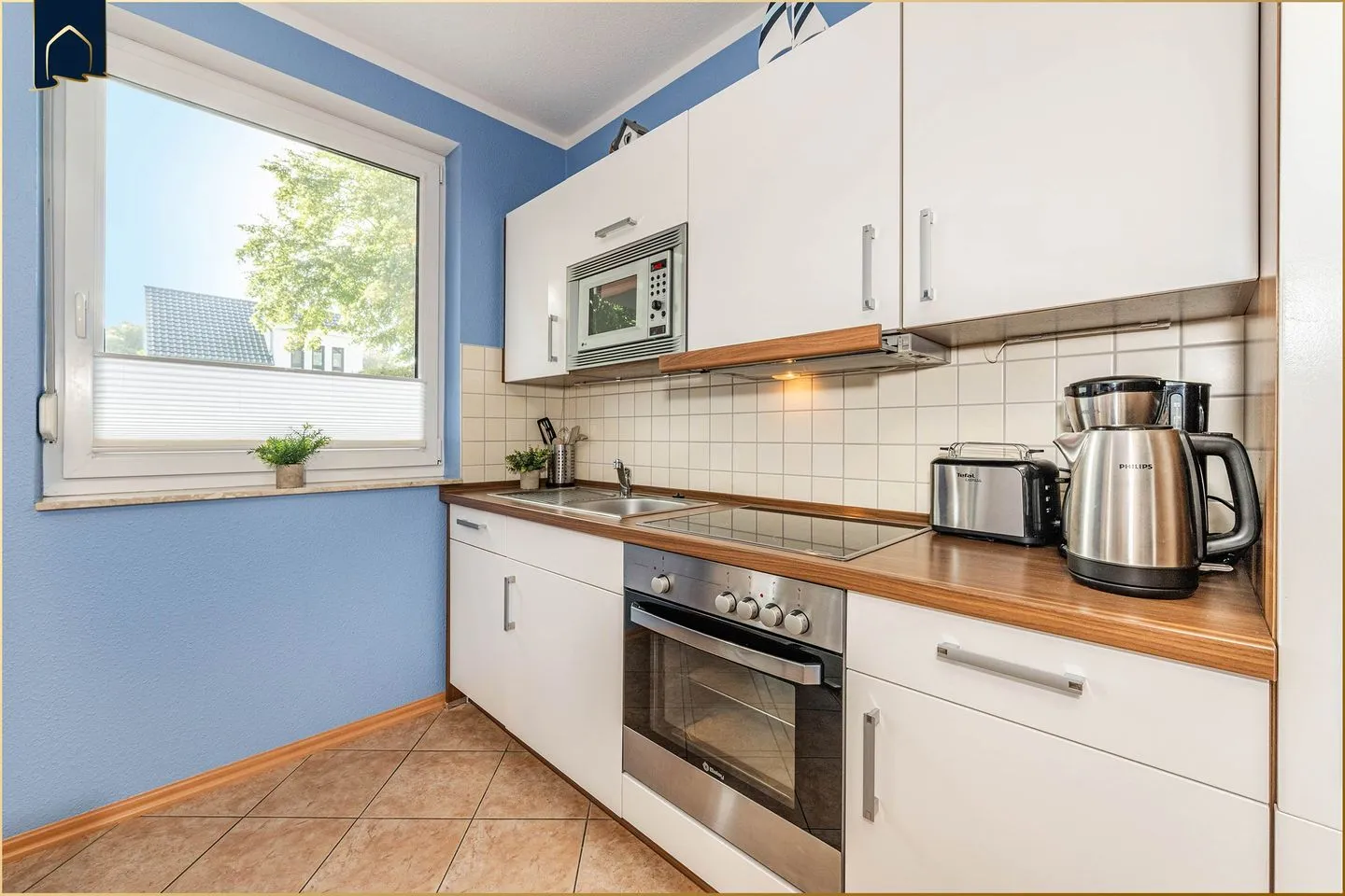 Die Ferienwohnung „Ostseegold“ in Ückeritz bietet auf 41 m² den perfekten Rückzugsort für alle, die die Ostsee in vollen Zügen genießen möchten. Die Erdgeschosswohnung verfügt über ein Schlafzimmer, ein gemütliches Wohnzimmer mit offener Küche sowie ein Badezimmer mit bodengleicher Dusche. Dank Fußbodenheizung, hochwertiger Küchenausstattung und liebevoller Einrichtung fühlen Sie sich hier vom ersten Moment an wohl. WLAN, Satelliten-TV und ein eigener Parkplatz direkt vor der Tür sorgen für zusätzlichen Komfort. Ein abschließbarer Fahrradabstellraum steht Ihnen ebenfalls zur Verfügung – ideal für alle, die die Umgebung gerne auf zwei Rädern erkunden.