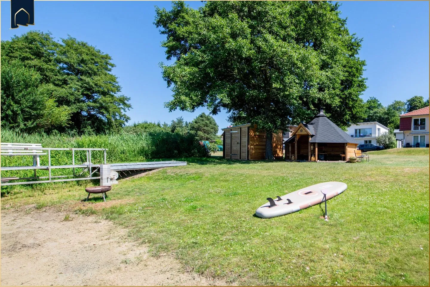 Im Außenbereich lädt der großzügige Garten mit Seeblick zum Entspannen ein. Sonnenliegen, Grillplatz und der direkte Zugang zum Krebssee schaffen beste Voraussetzungen für ruhige Stunden in der Natur – ob beim Lesen, Sonnen oder einfach beim Abschalten.