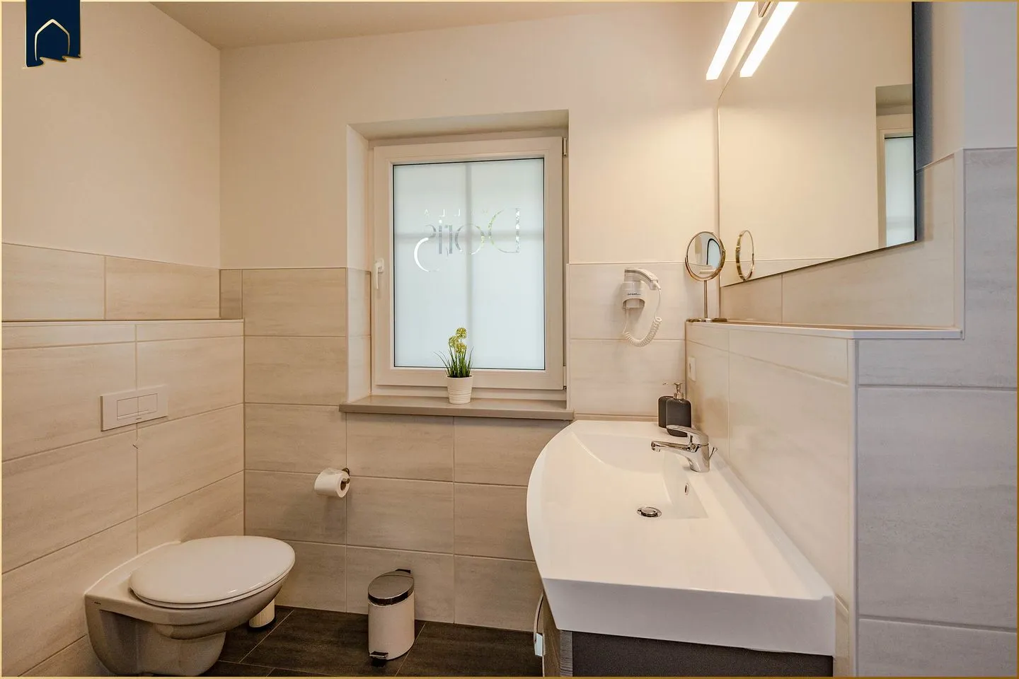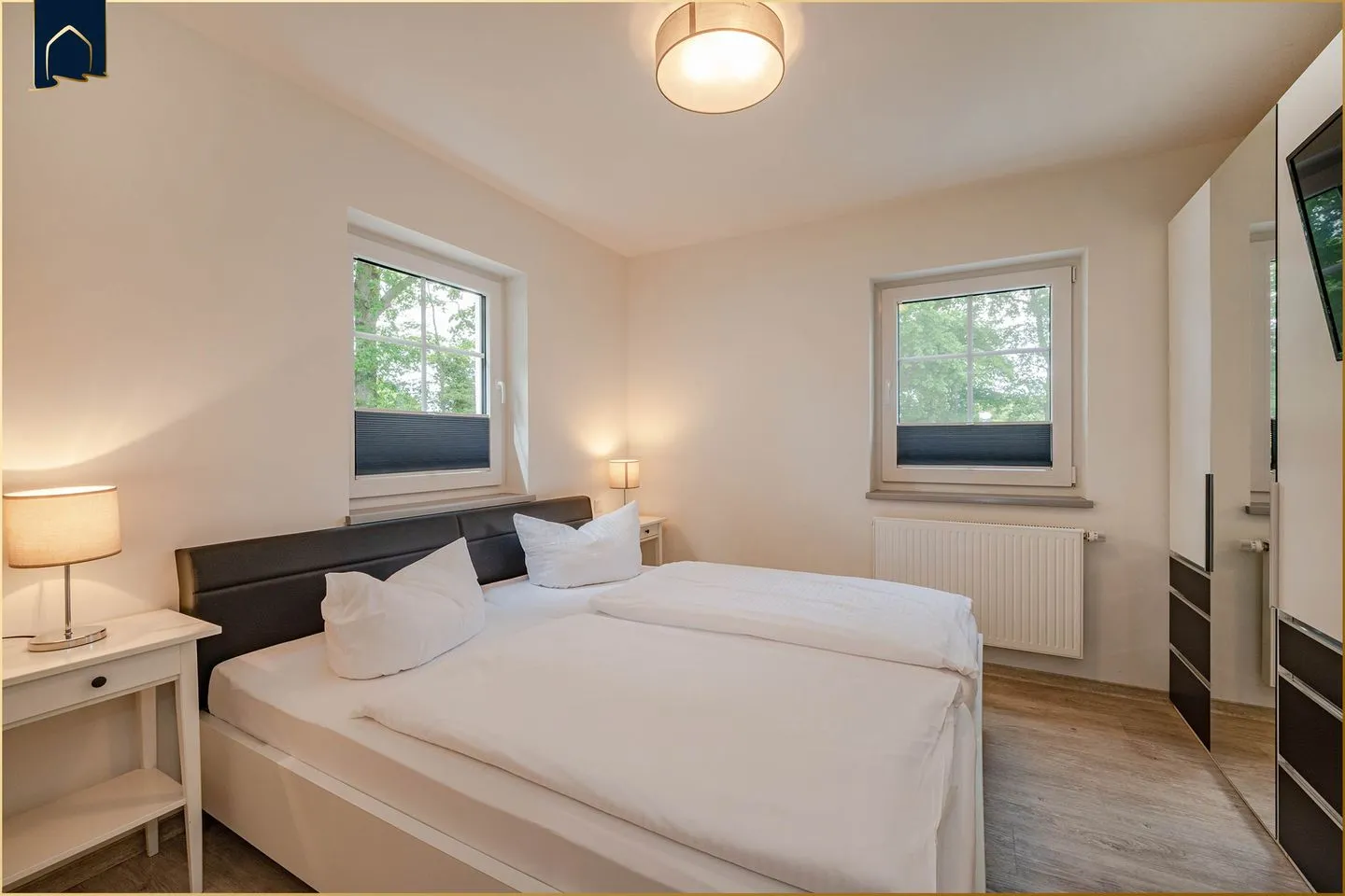 Die Wohnung punktet mit einer großzügigen Terrasse inklusive Gartenmöbeln, Sonnenschirm und Grillplatz – ideal für ein entspanntes Frühstück oder gesellige Abende. Kinder können sich auf dem Spielplatz mit Schaukel, Rutsche und Bollerwagen austoben, während die Erwachsenen die hauseigene Sauna oder den Ruheraum genießen. Ein Fahrradabstellraum ist ebenfalls vorhanden – perfekt, um die Umgebung aktiv zu erkunden. Sichtschutz an allen Fenstern und Fliegengitter sorgen für angenehme Privatsphäre und einen erholsamen Schlaf.